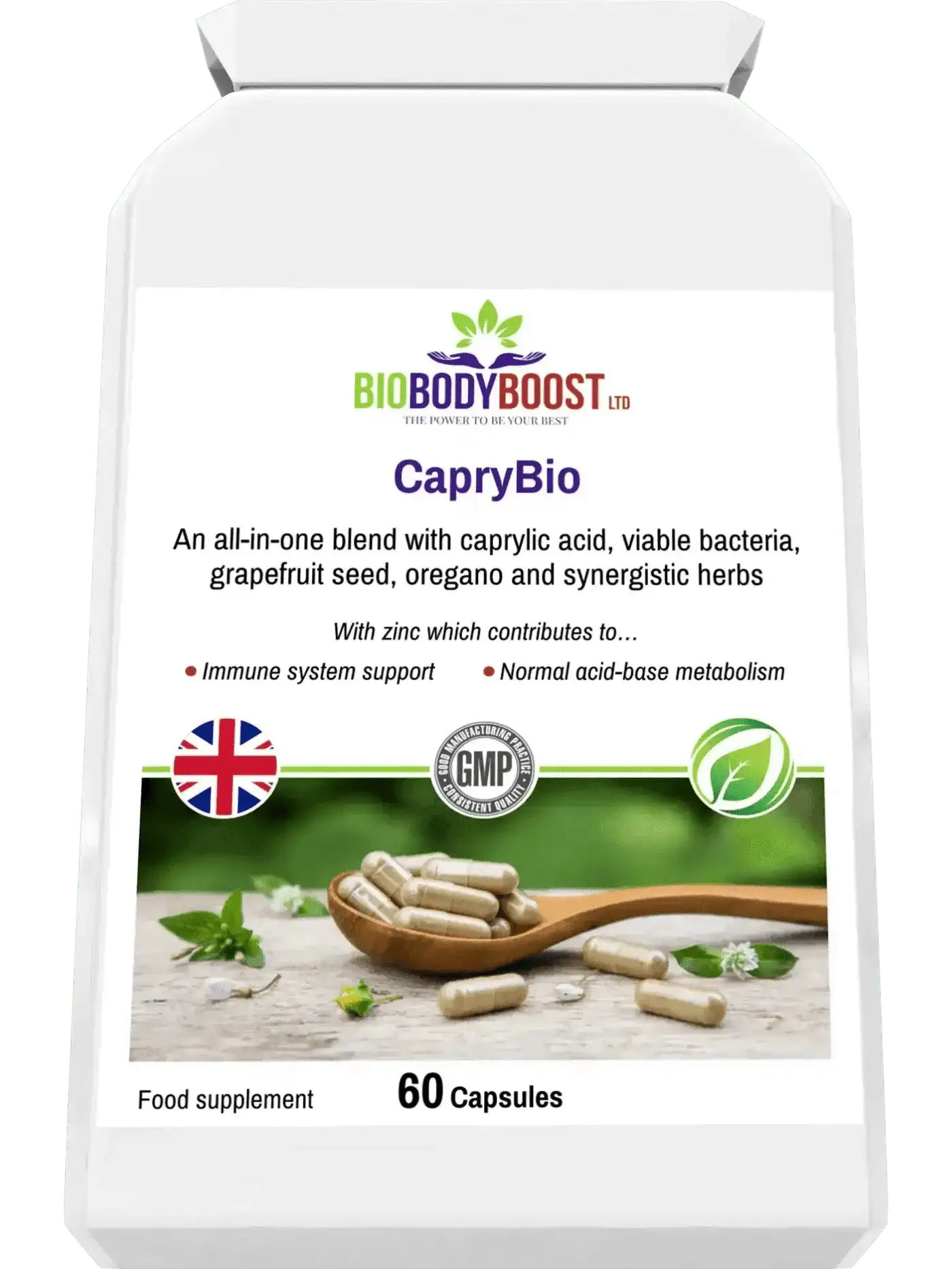 CapryBio is a comprehensive digestive health supplement combining caprylic acid with powerful plant extracts, probiotics, and zinc to help support gut balance, microbial defense, and long-term digestive wellness.