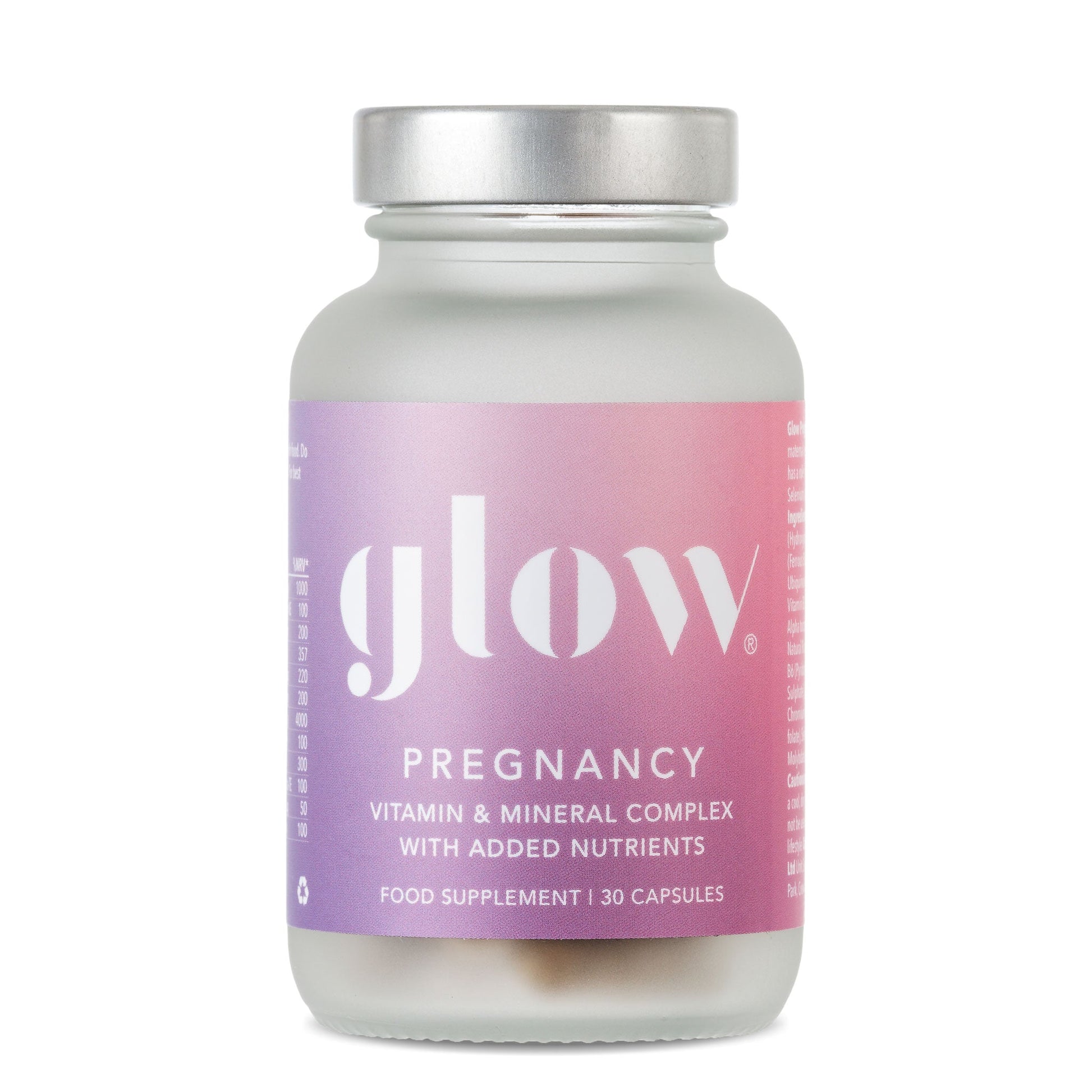 Our Glow Pregnancy Support formulation contain some of the best forms of vitamins and minerals available to you. Our Folate is in a natural methylated form. The 30 capsules contribute to maternal tissue growth during pregnancy and to normal energy-yielding metabolism.